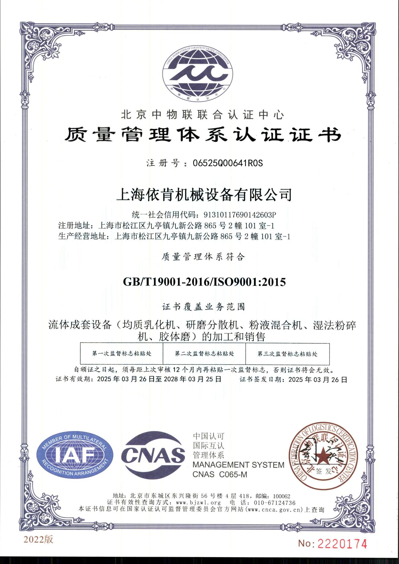 質(zhì)量管理體系認(rèn)證證書